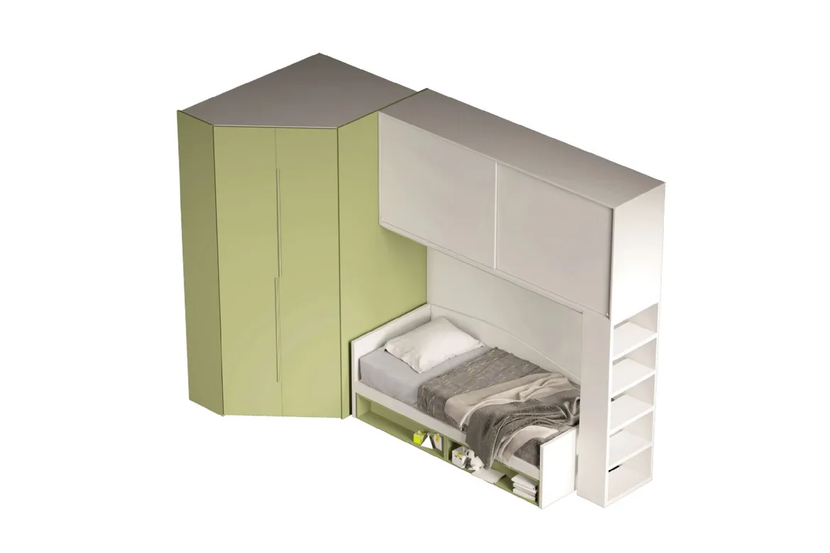 Classica soluzione salvaspazio, l'armadio a ponte lineare permette di creare composizioni pratiche e funzionali in una singola parete, grazie a vani che ottimizzano in modo strategico lo spazio della cameretta. I vani integrati ottimizzano strategicamente lo spazio, mentre la scelta tra anta battente e scorrevole, insieme alle diverse configurazioni degli elementi laterali, garantisce massima personalizzazione e adattabilità.